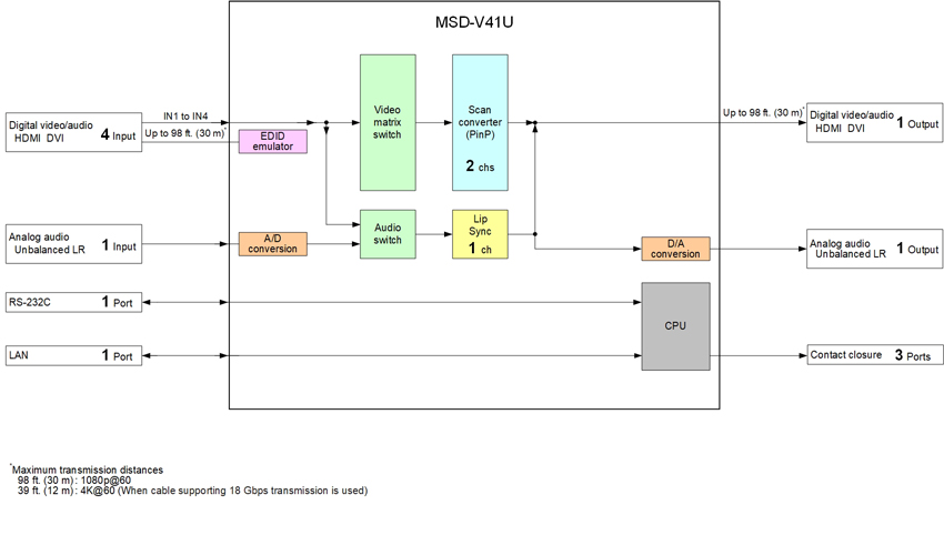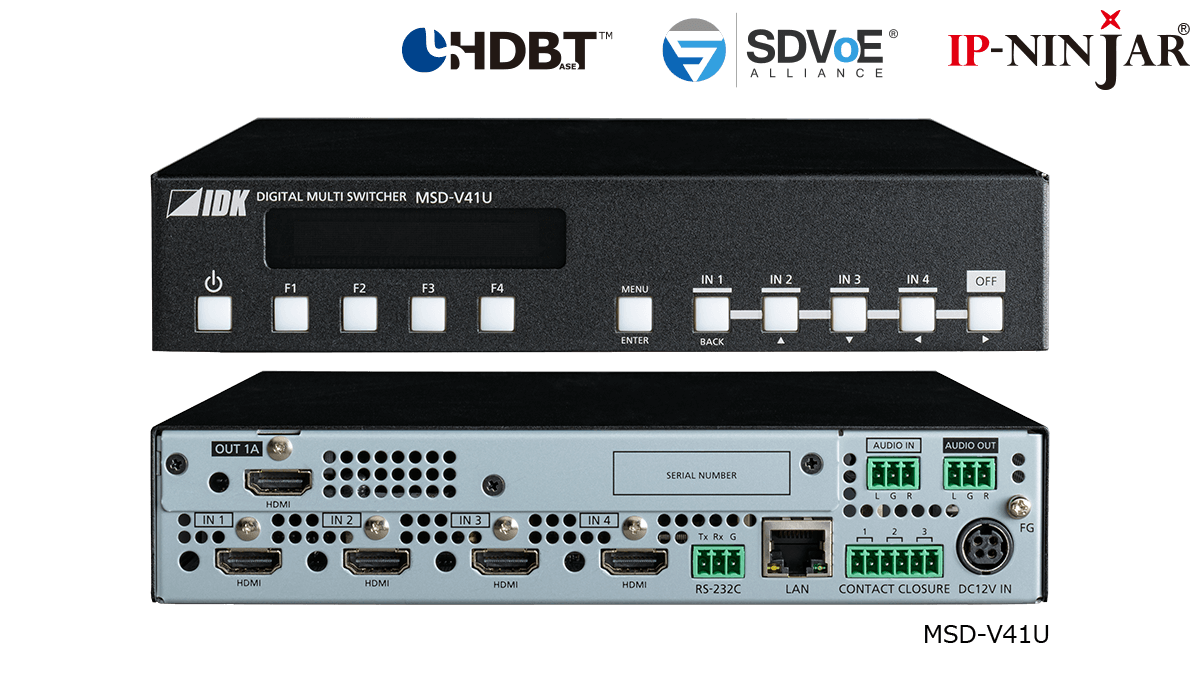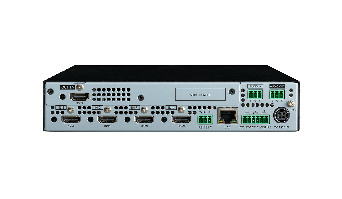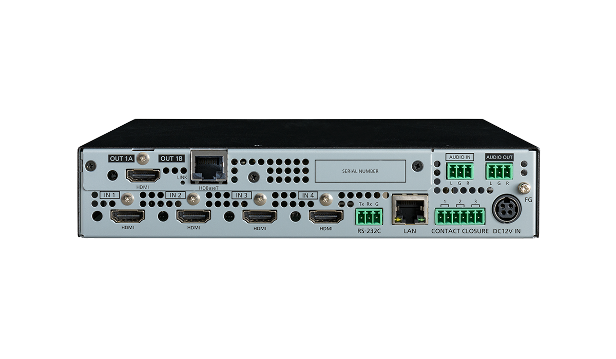 The MSD-V4 series is a digital presentation switcher with built-in scalers and scan converters capable of sending and receiving UHD video resolutions.
