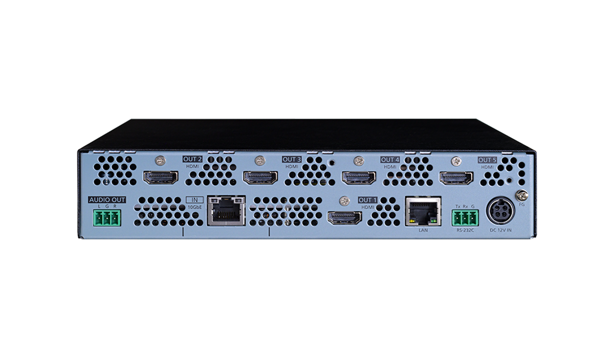 The NJR-L13UC-T/NJR-L13UC-R includes three distribution outputs while the NJR-L15UC-T/NJR-L15UC-R have five distribution outputs. The distribution outputs of the encoders are HDMI output(s) and 10GbE outputs, and those on the decoders are HDMI output only.