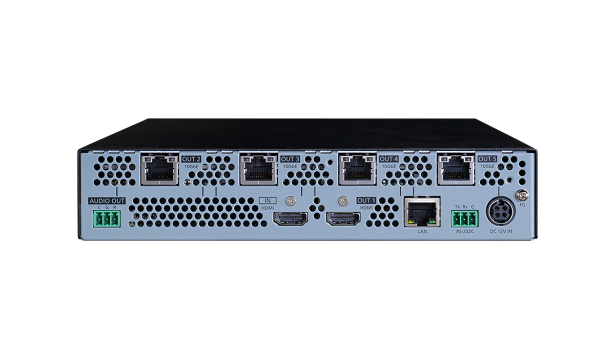 The NJR-L13UC-T/NJR-L13UC-R includes three distribution outputs while the NJR-L15UC-T/NJR-L15UC-R have five distribution outputs. The distribution outputs of the encoders are HDMI output(s) and 10GbE outputs, and those on the decoders are HDMI output only.
