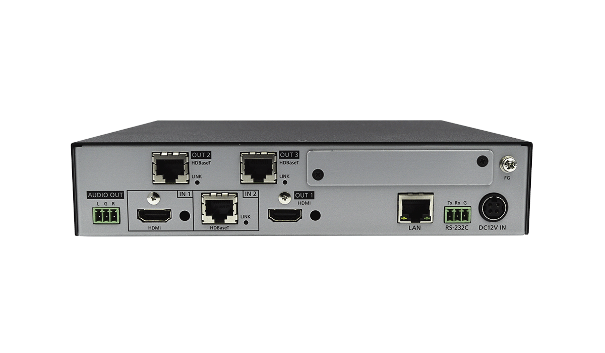 | Functions | WEB browser control, Input channel automatic switching, Anti-snow, Connection Reset , Button security lockout, OUT1 supports down conversion (4K to 1080p), Status notification, Each video output OFF, I/O signal status display, HDBaseT status display |