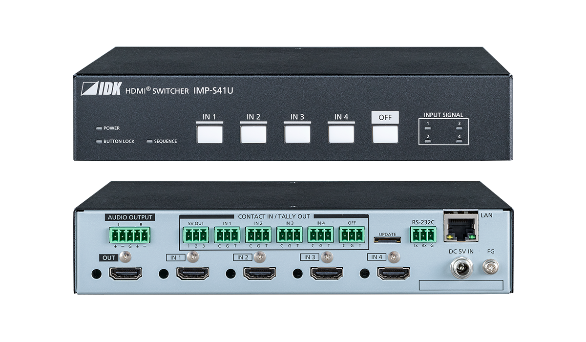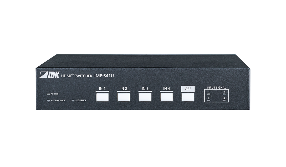 The IMP-S41U is an HDCP 2.2-compliant 4K@60 HDMI switcher with four inputs and one output.