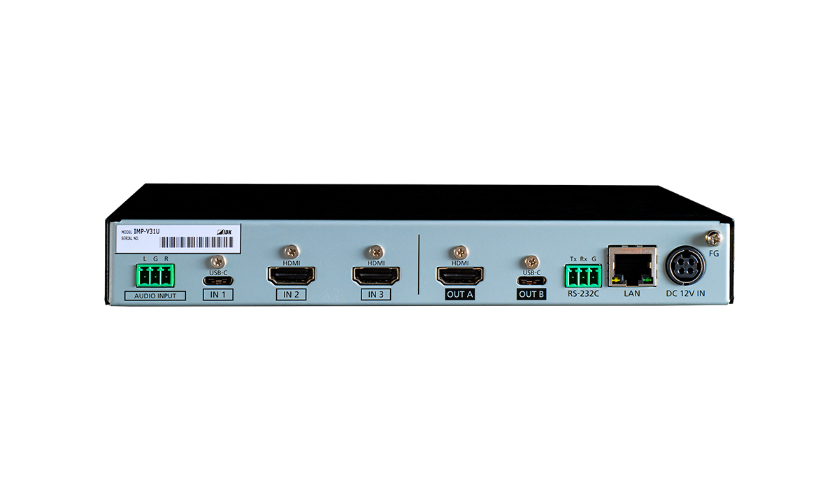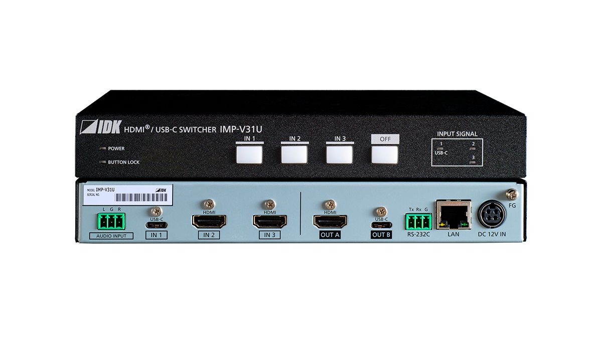 The IMP-V31U is an HDMI and USB-C switcher having three (3) inputs and two (2) distributed outputs.