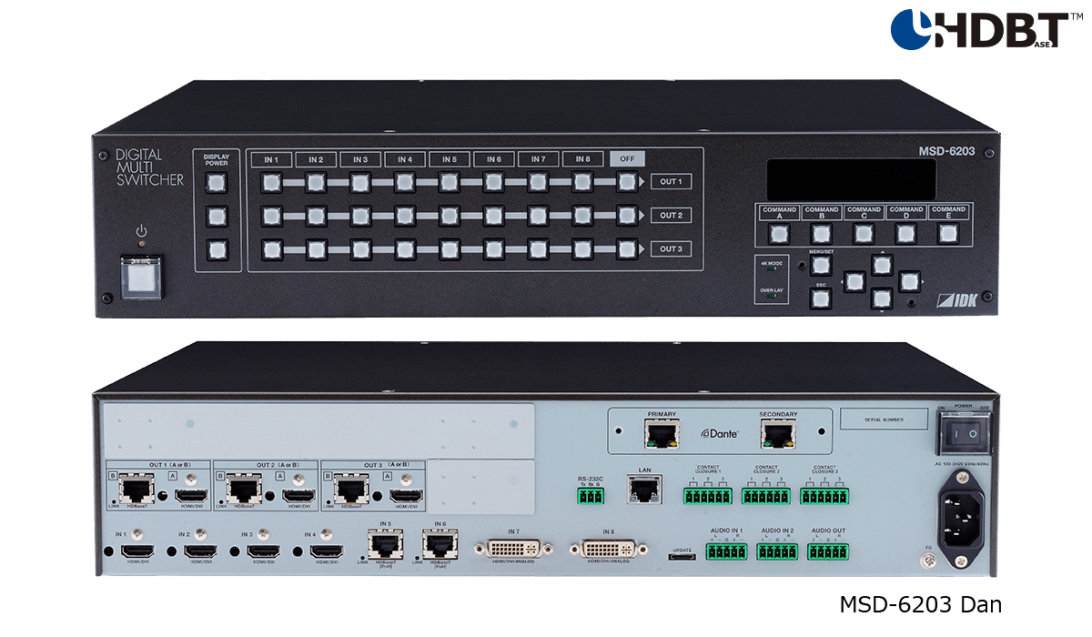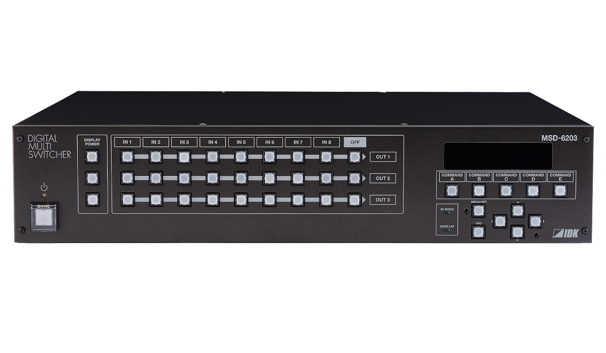 The IDK MSD-6203 is a high-performance digital multi switcher with a scan converter and up to 8 inputs and 3 outputs.