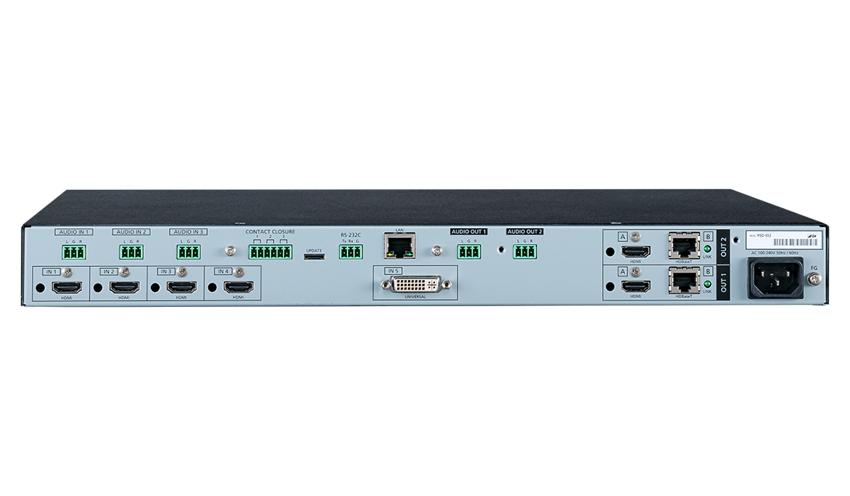 The MSD-S52 is a digital presentation switcher with five inputs and two outputs.