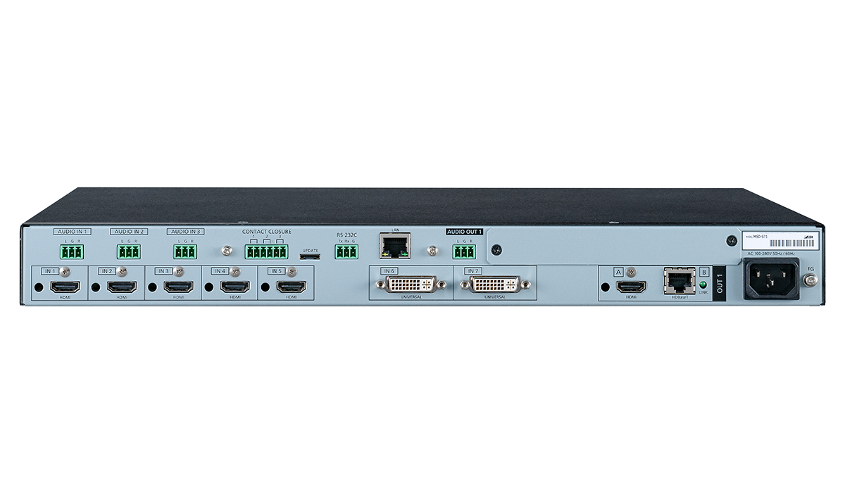 The MSD-S71 is a digital presentation switcher with seven inputs and one output.
