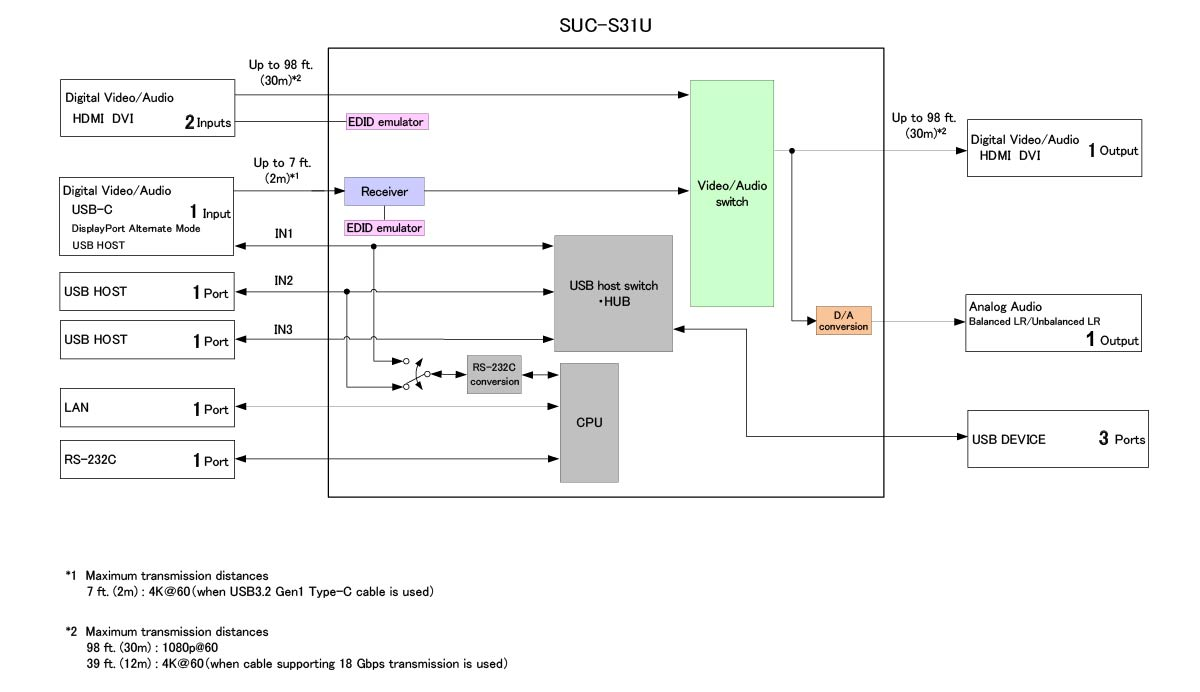 The SUC-S31U can be configured and controlled remotely using RS-232C or LAN.