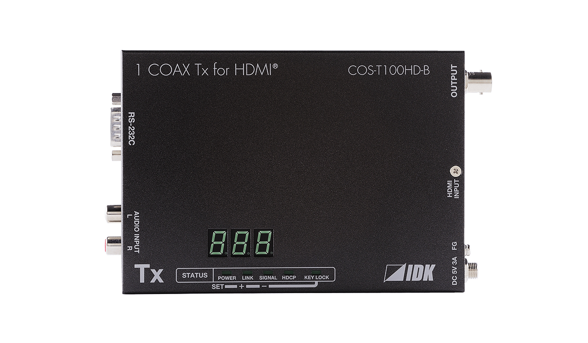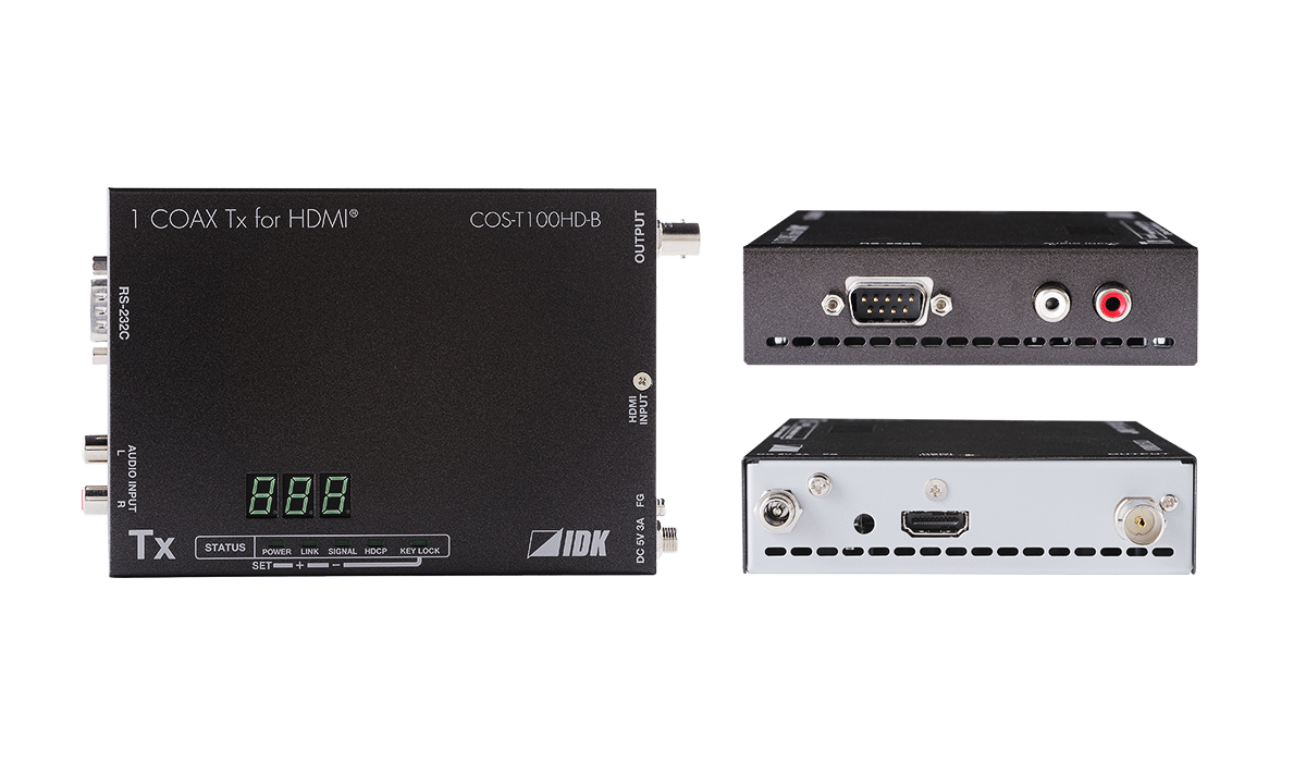 The IDK COS-T100HD-B / COS-R100HD-B HDMI Coaxial Cable Extender is an extender for transmission of HDMI signals using a coaxial cable.
