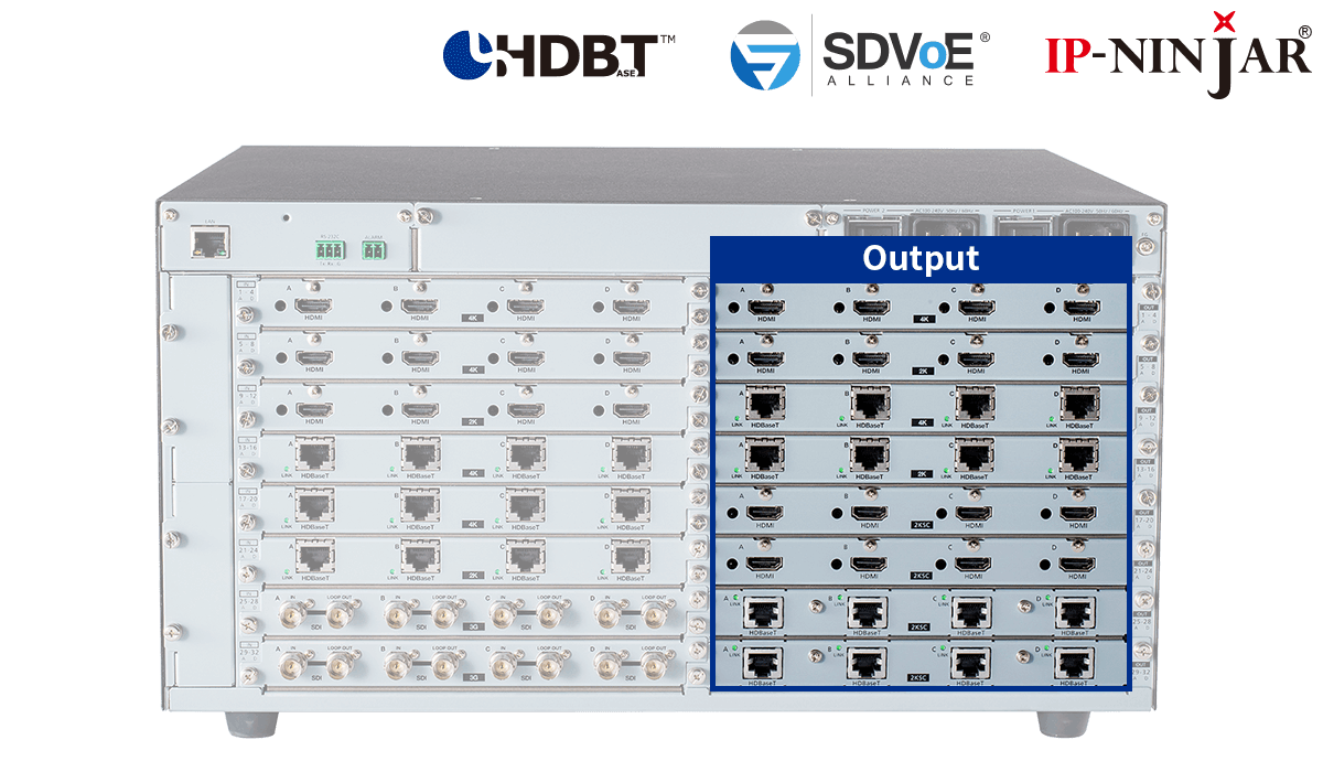 | Output Video | 10GbE | SDVoE, AES-128 36 bit Deep Color, HDR For 4K@50/59.94/60 RGB/YCbCr 4:4:4, 24 bit is supported. x.v.Color/3D/ARC/HEC/CEC are not supported. RS-232C/LAN |