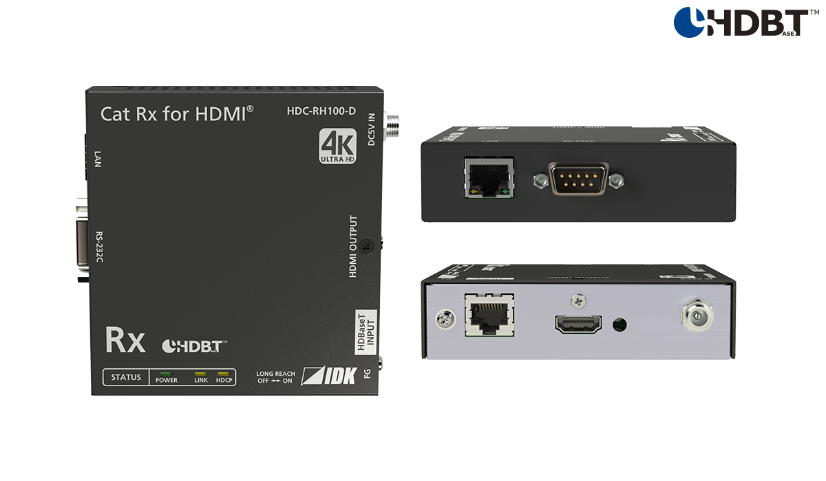 The IDK HDC-TH100-D/HDC-RH100-D are extender for a long-haul transmission of HDMI signal over one single category cable.