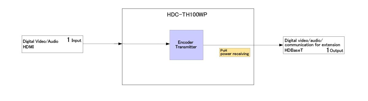 | Output | 1 output HDBaseT PoH power supplied (PD) (equivalent to IEEE802.3af) Connector: RJ-45 |