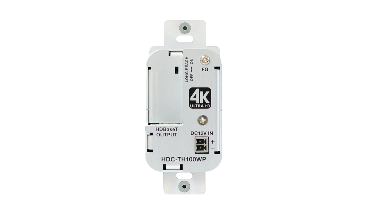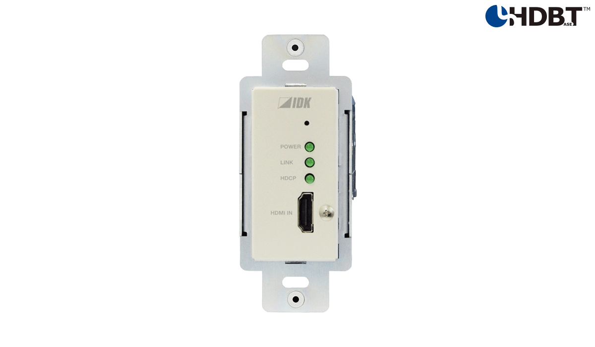 The IDK HDC-TH100WP is a wall-mountable transmitter for a long-haul transmission of HDMI signal over one single twisted pair cable.