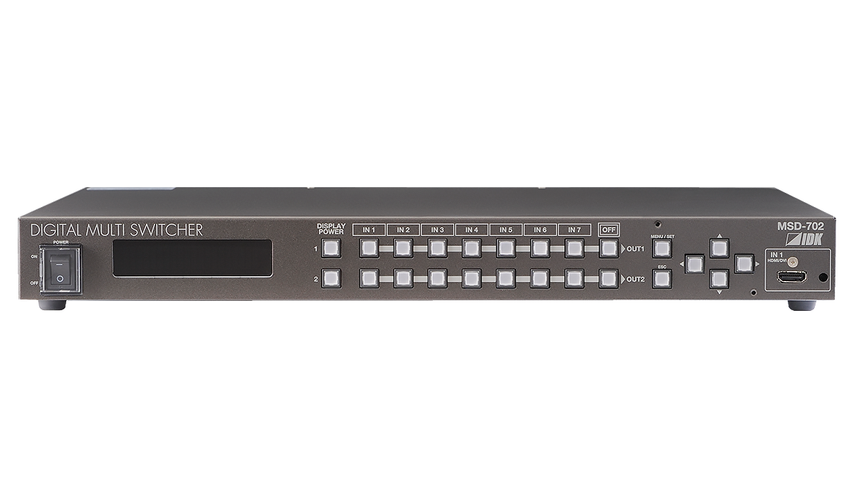 The IDK MSD-702 is a high-performance digital multi switcher with a scan converter and up to 7 inputs and 2 outputs.