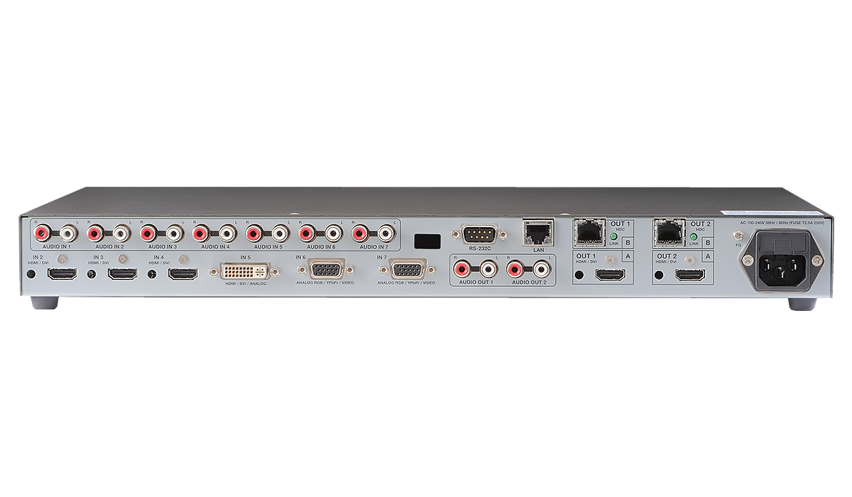 The MSD-702 also has other features such as built-in scan converter, Seamless Switching, and Aspect Ratio Control for complete AV switching and distribution. Close