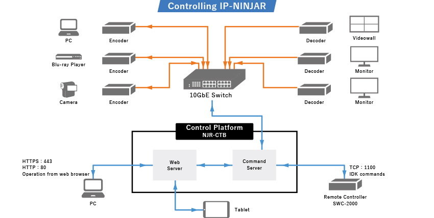 The NJR-CTB automatically recognizes IP-NINJAR units which are connected in a network, monitors status, configures videowall, multiview, and other settings.