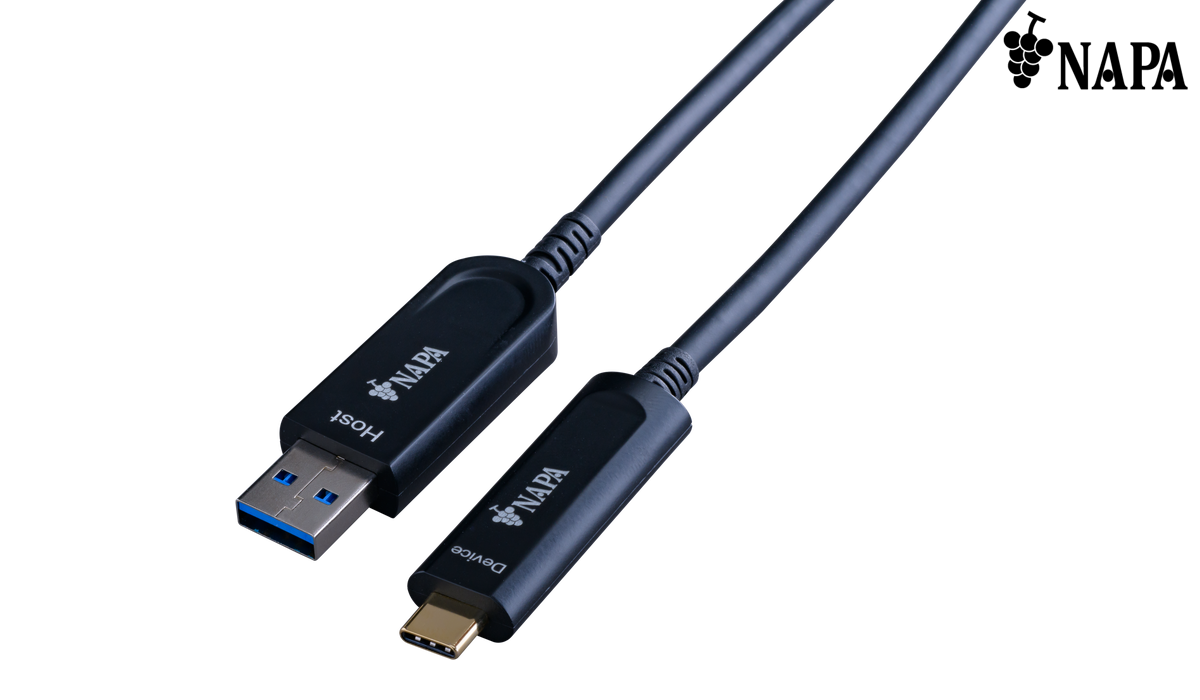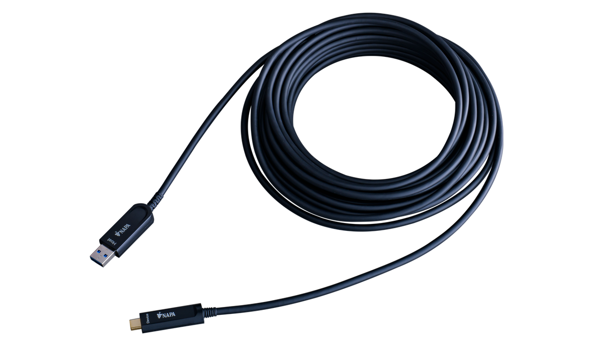 NP-AOC-SA2C extends USB 3.2 / 2.0 / 1.1 data up to 15 m with USB optical extension cable and USB-C / USB-A connector.